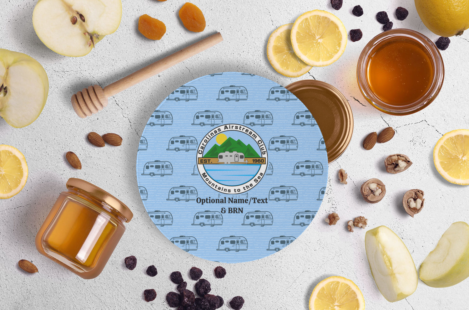 Made from rubber and a polyester top, these personalized jar openers serve as a functional addition to your kitchen counter-top. With its light weight and thin structure, these manual jar openers are straightforward and easy to use. The tool has a 5" diameter, and can therefore fit over most jars that have a diameter smaller than 4".