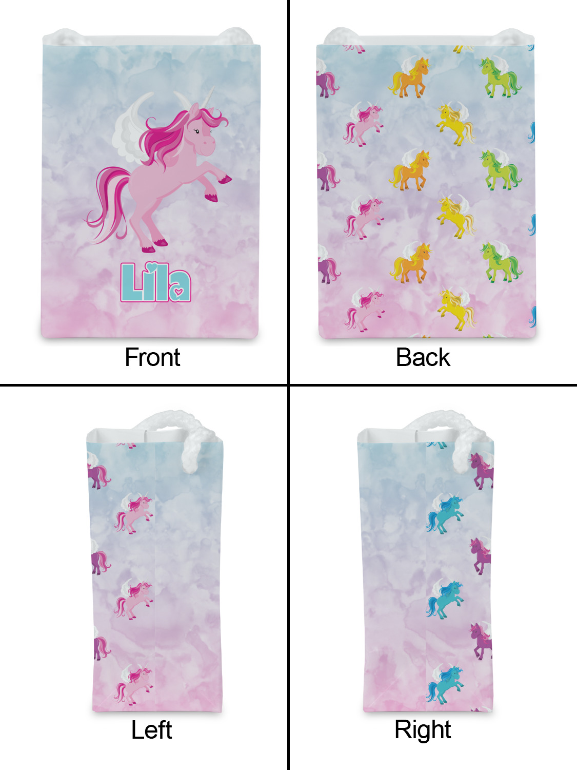These jewelry gift bags are available in two finishes - matte or gloss. The are digitally printed in full color, then cut down to size, scored & folded. A single handle is attached.