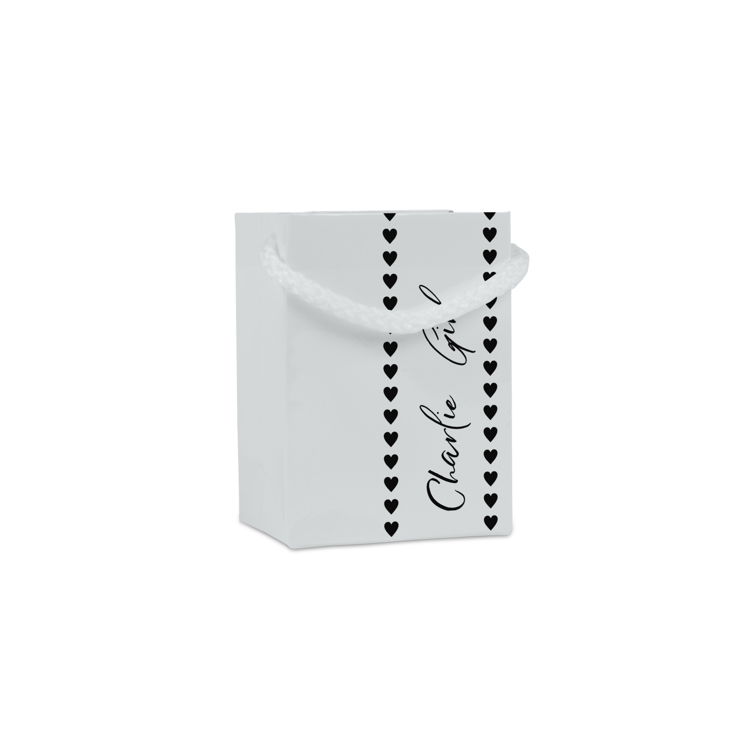 These jewelry gift bags are available in two finishes - matte or gloss. The are digitally printed in full color, then cut down to size, scored & folded. A single handle is attached.