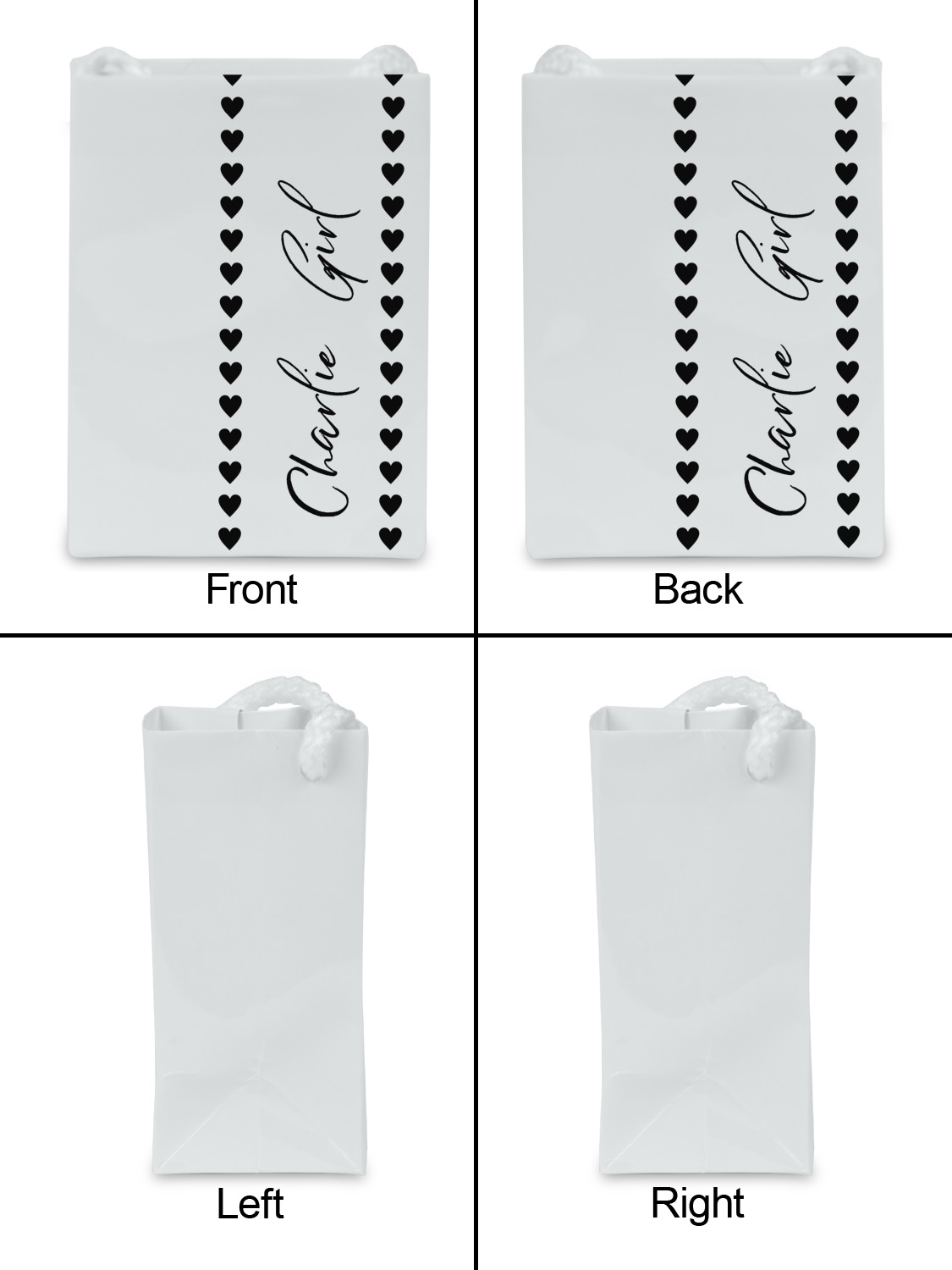 You can design a your gift bag by customizing one of our design templates. Our design studio enables you to customize your design - you can change any part of the design template. You can also upload a photo, logo or any image.