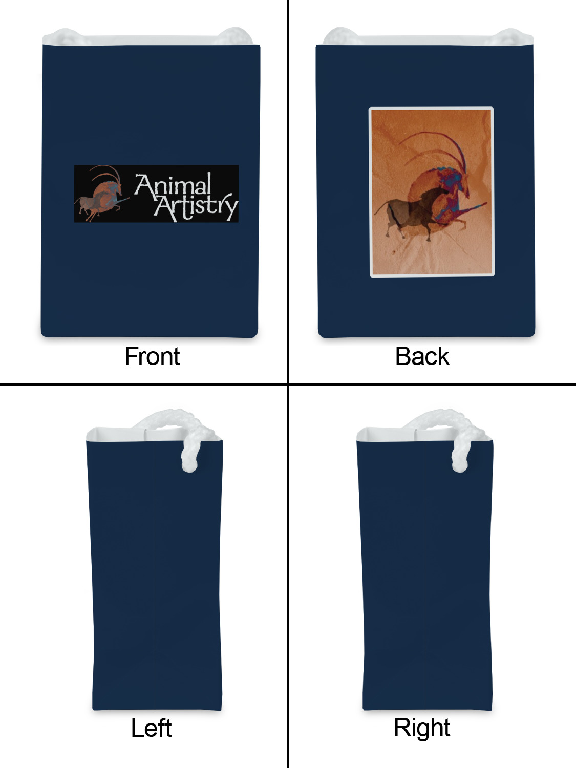 These jewelry gift bags are available in two finishes - matte or gloss. The are digitally printed in full color, then cut down to size, scored & folded. A single handle is attached.