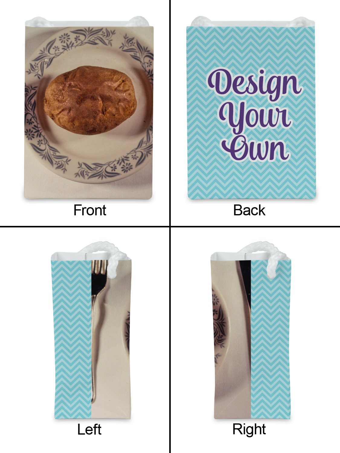 You can design a your gift bag by customizing one of our design templates. Our design studio enables you to customize your design - you can change any part of the design template. You can also upload a photo, logo or any image.