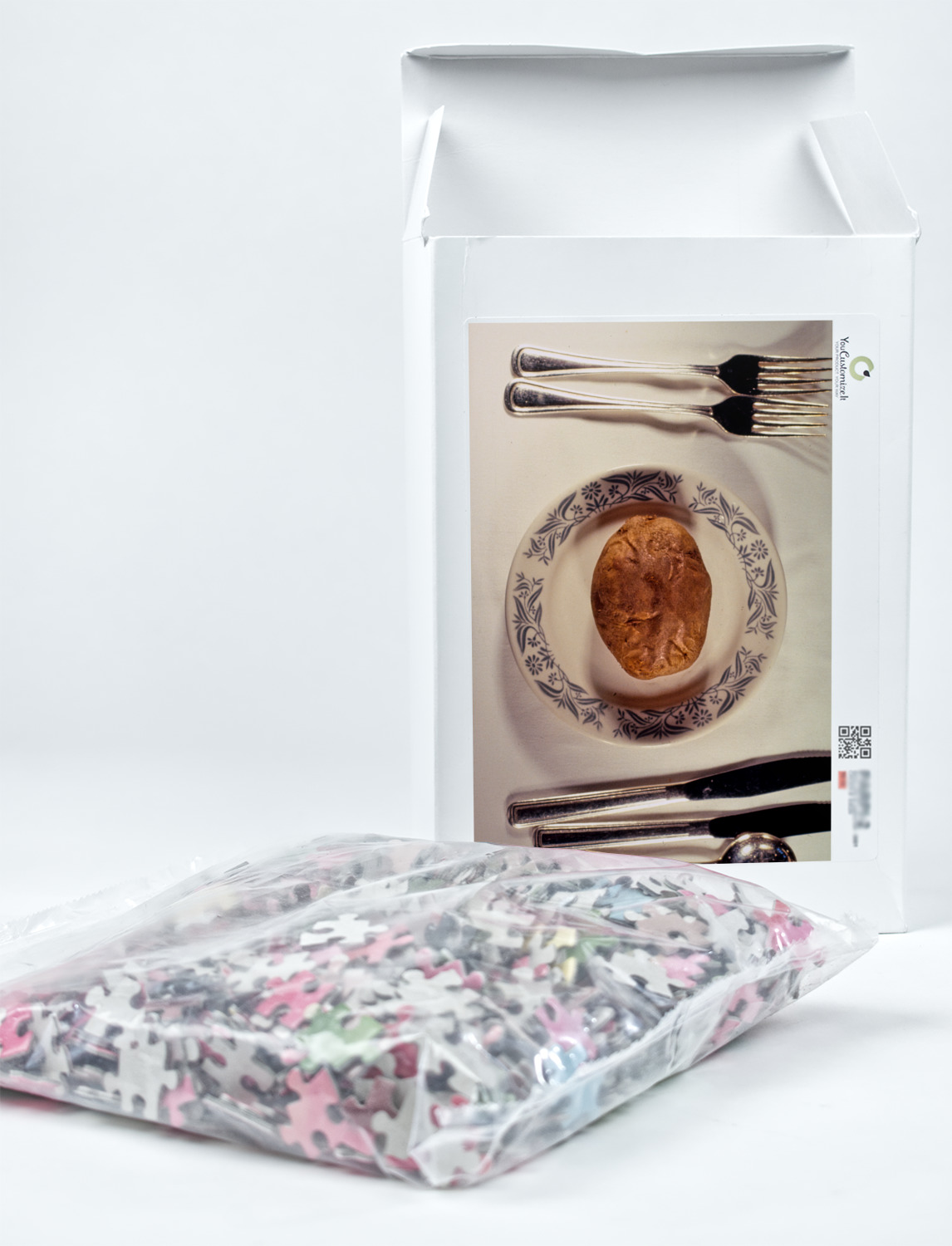 You can also upload your logo or art that you or your kids drew. To create more challenging jigsaw puzzles, you can create a pattern from with your logo or artwork. You can also add other elements such as text or personalization.