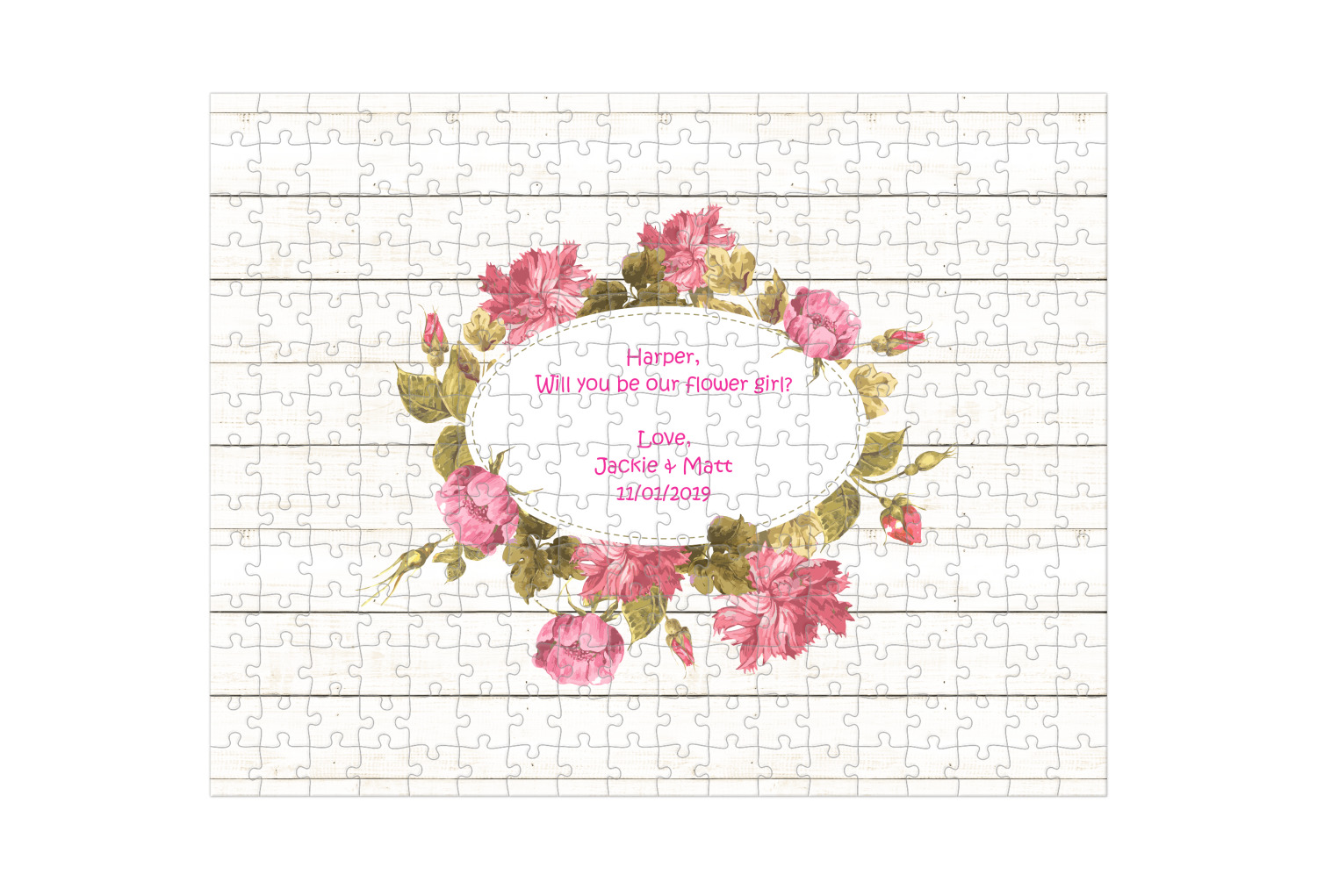 Depending on the look you are trying to achieve, you can add; a thematic pattern or background, with a photo in a frame and text or personalization to your puzzle. Basically if you can imagine it, you can design it!