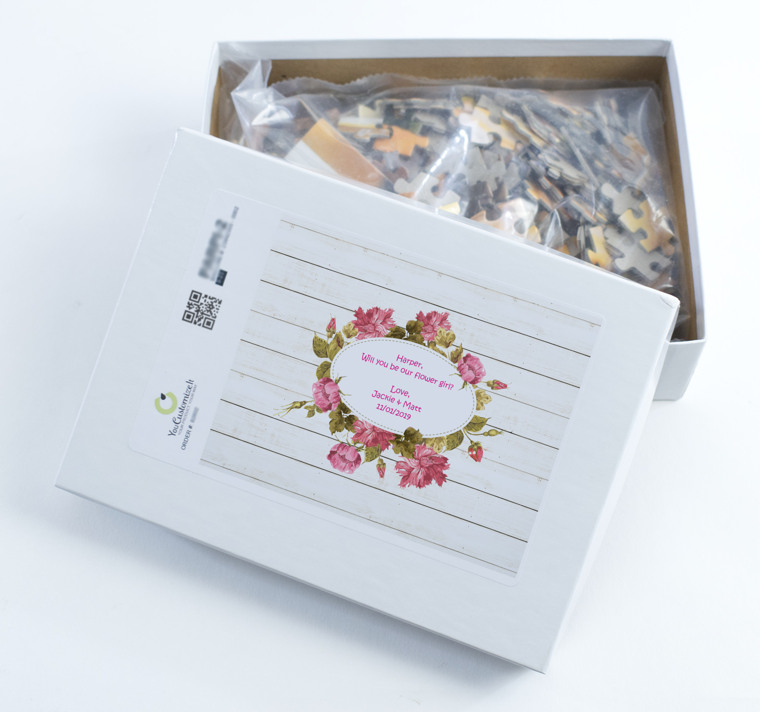 You can also upload your logo or art that you or your kids drew. To create more challenging jigsaw puzzles, you can create a pattern from with your logo or artwork. You can also add other elements such as text or personalization.