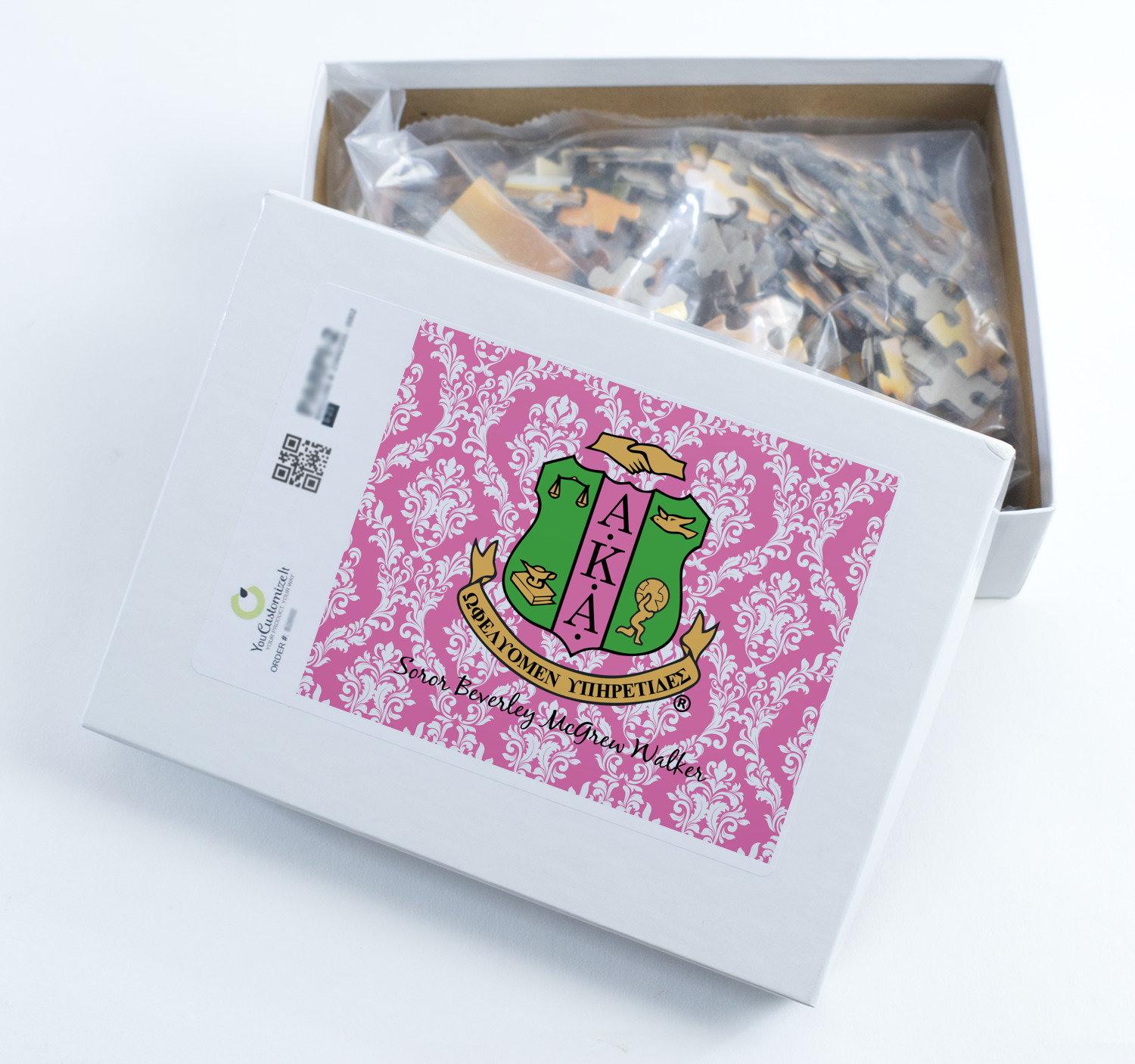 You can also upload your logo or art that you or your kids drew. To create more challenging jigsaw puzzles, you can create a pattern from with your logo or artwork. You can also add other elements such as text or personalization.