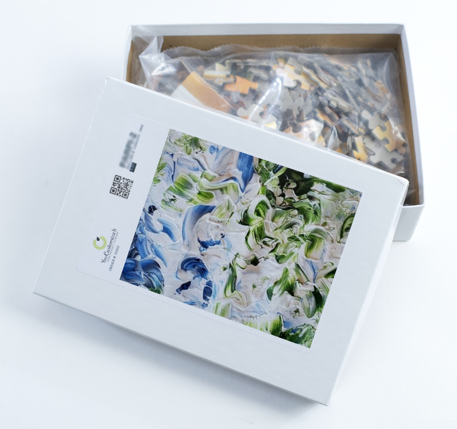 We print our puzzles on thick white chipboard in vibrant colors, then laminate the chipboard and die cut your puzzle. Your jigsaw puzzle is shipped to you in a box with the image of the puzzle on the box.