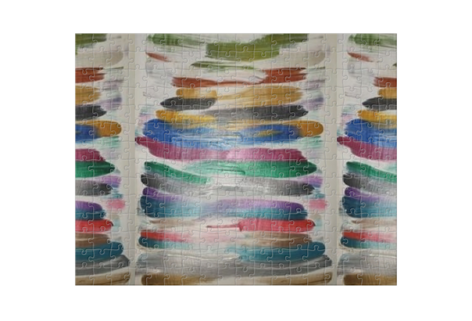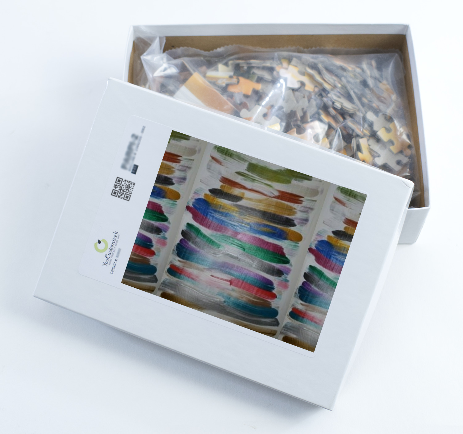 We print our puzzles on thick white chipboard in vibrant colors, then laminate the chipboard and die cut your puzzle. Your jigsaw puzzle is shipped to you in a box with the image of the puzzle on the box.