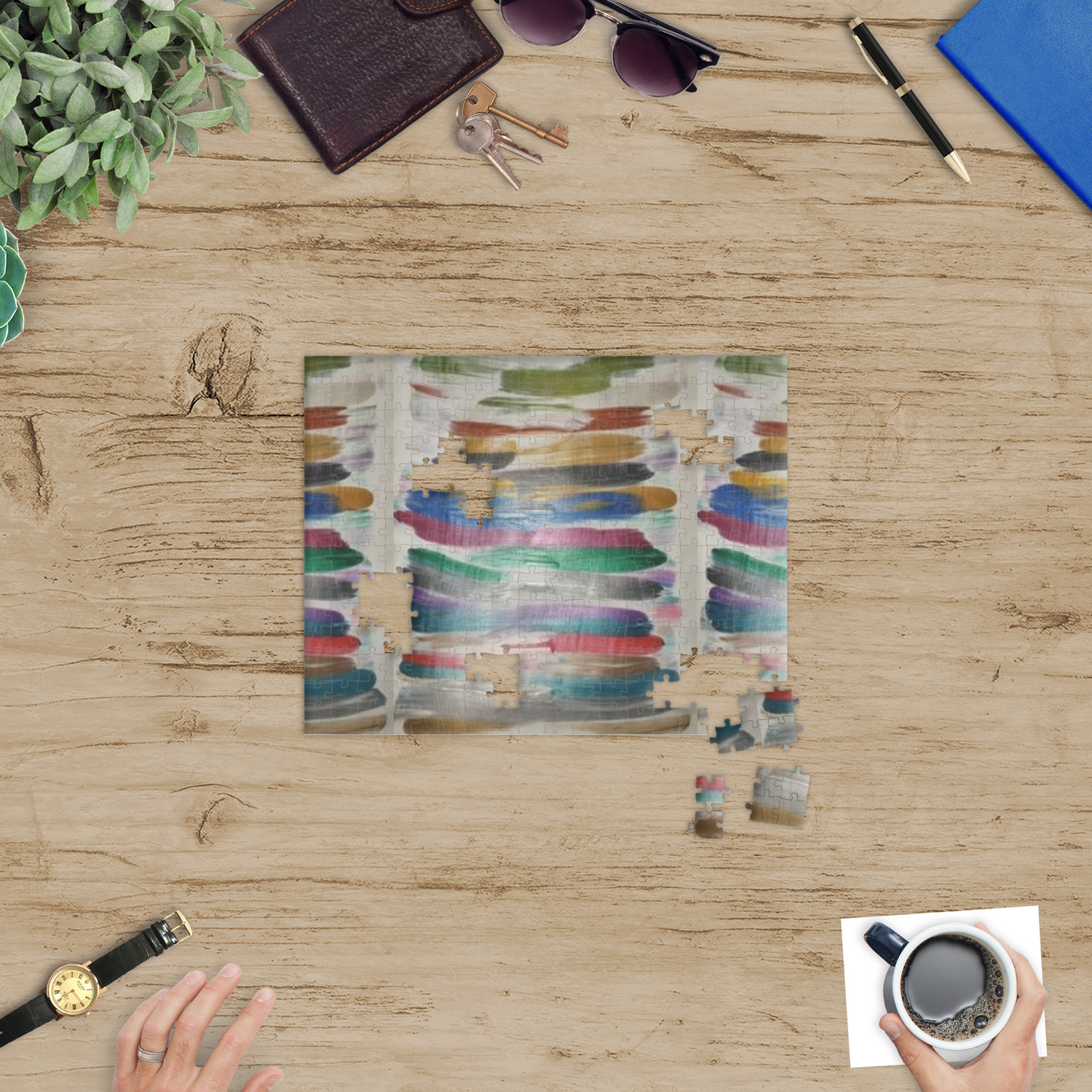 You can also upload your logo or art that you or your kids drew. To create more challenging jigsaw puzzles, you can create a pattern from with your logo or artwork. You can also add other elements such as text or personalization.