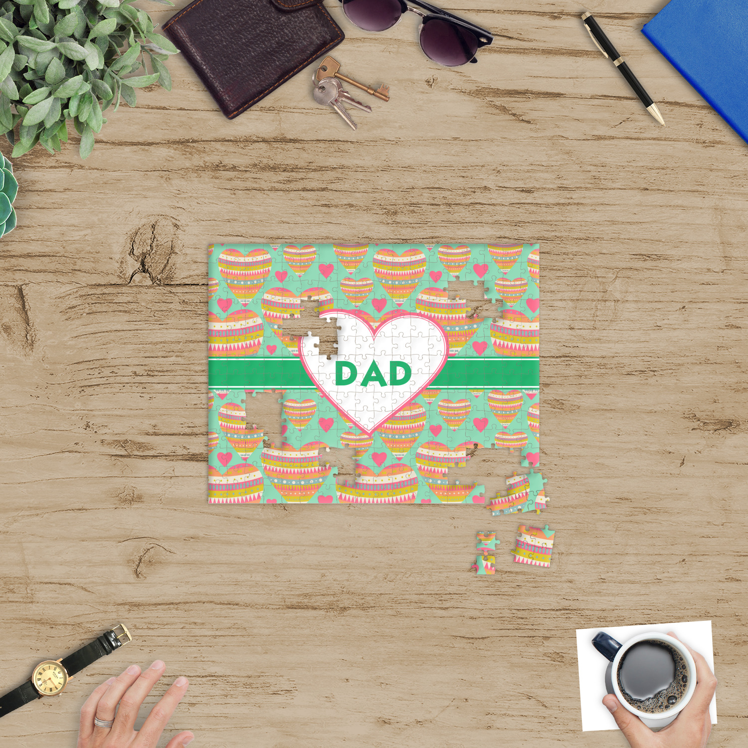 Depending on the look you are trying to achieve, you can add; a thematic pattern or background, with a photo in a frame and text or personalization to your puzzle. Basically if you can imagine it, you can design it!