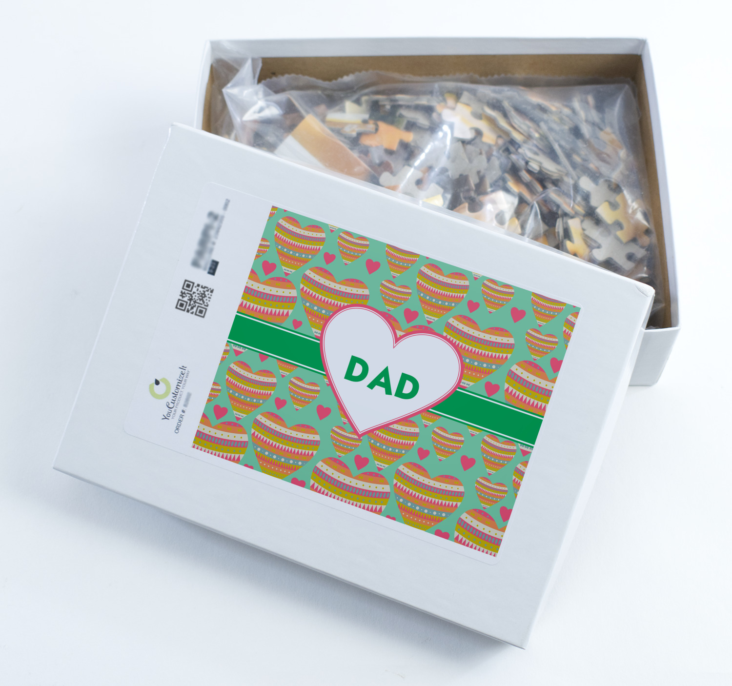 You can also upload your logo or art that you or your kids drew. To create more challenging jigsaw puzzles, you can create a pattern from with your logo or artwork. You can also add other elements such as text or personalization.