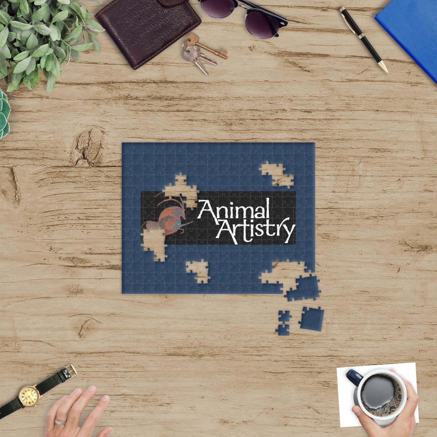You can also upload your logo or art that you or your kids drew. To create more challenging jigsaw puzzles, you can create a pattern from with your logo or artwork. You can also add other elements such as text or personalization.