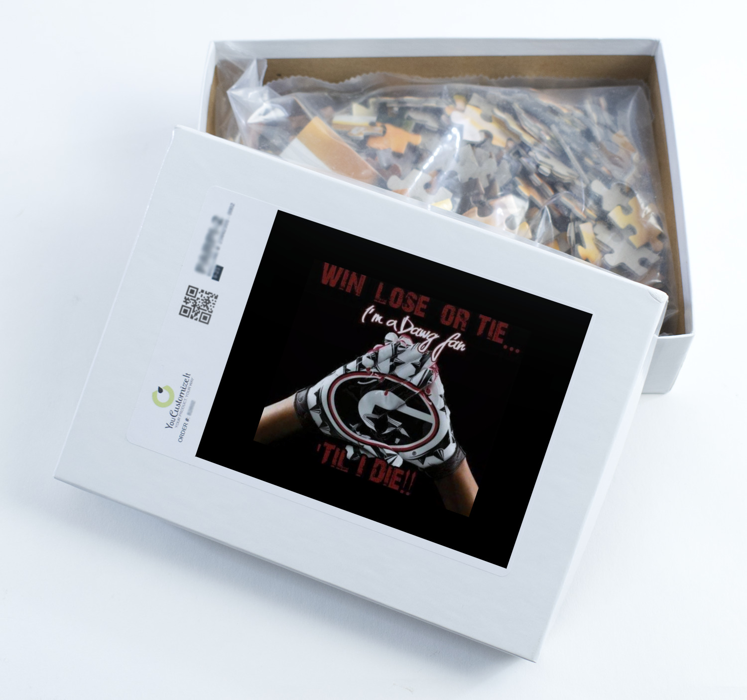 At YouCustomizeIt.com, you get to decide what you want on your puzzle. A scenic picture, a family photo, framed photo, photo with text, artwork, logo, patterns etc. You decide what you want.