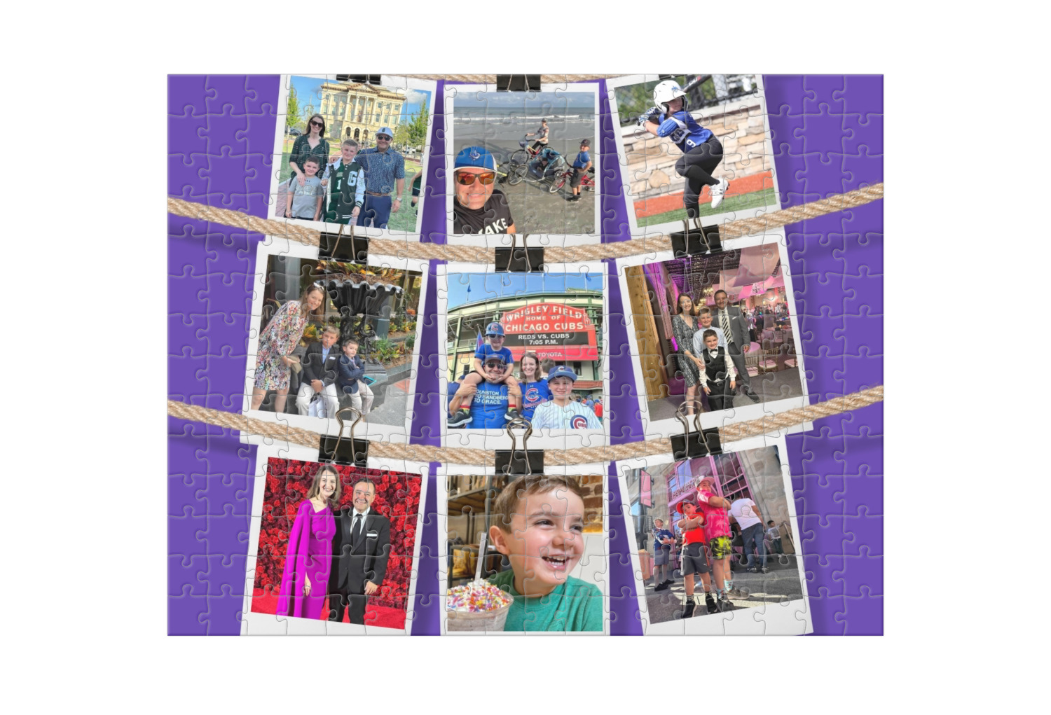 Depending on the look you are trying to achieve, you can add; a thematic pattern or background, with a photo in a frame and text or personalization to your puzzle. Basically if you can imagine it, you can design it!