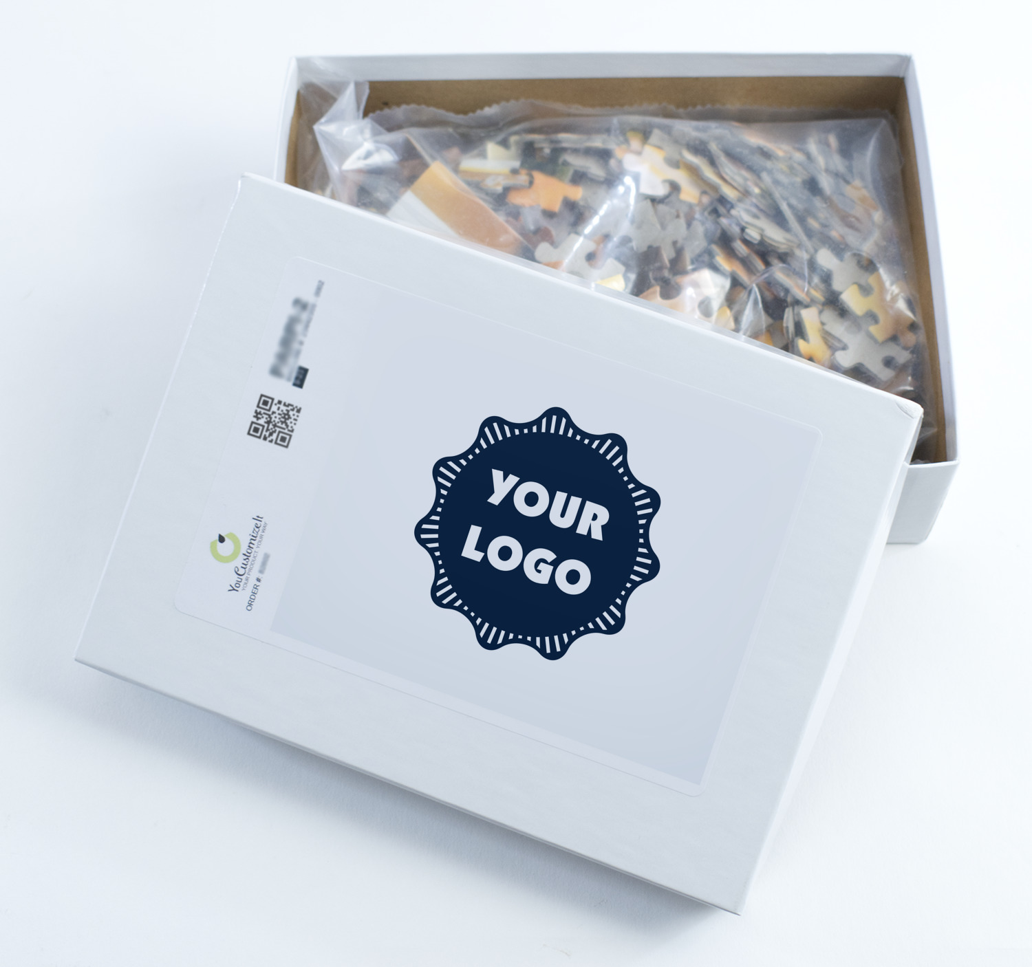 You can also upload your logo or art that you or your kids drew. To create more challenging jigsaw puzzles, you can create a pattern from with your logo or artwork. You can also add other elements such as text or personalization.