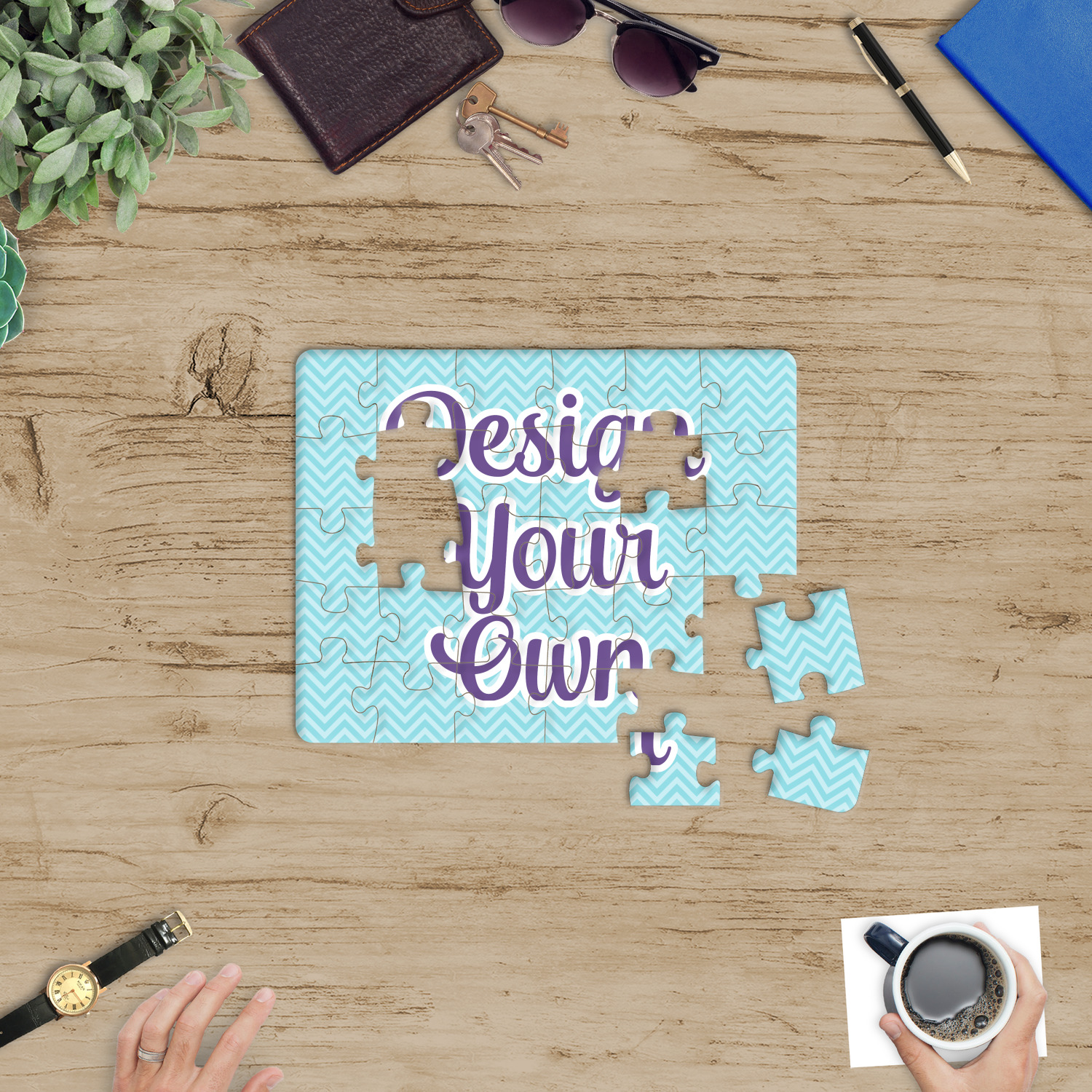 You can also upload your logo or art that you or your kids drew. To create more challenging jigsaw puzzles, you can create a pattern from with your logo or artwork. You can also add other elements such as text or personalization.