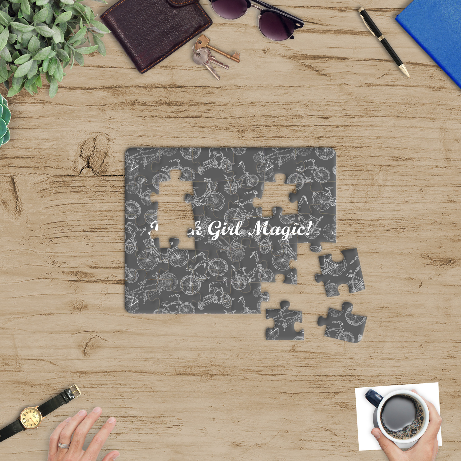 You can also upload your logo or art that you or your kids drew. To create more challenging jigsaw puzzles, you can create a pattern from with your logo or artwork. You can also add other elements such as text or personalization.