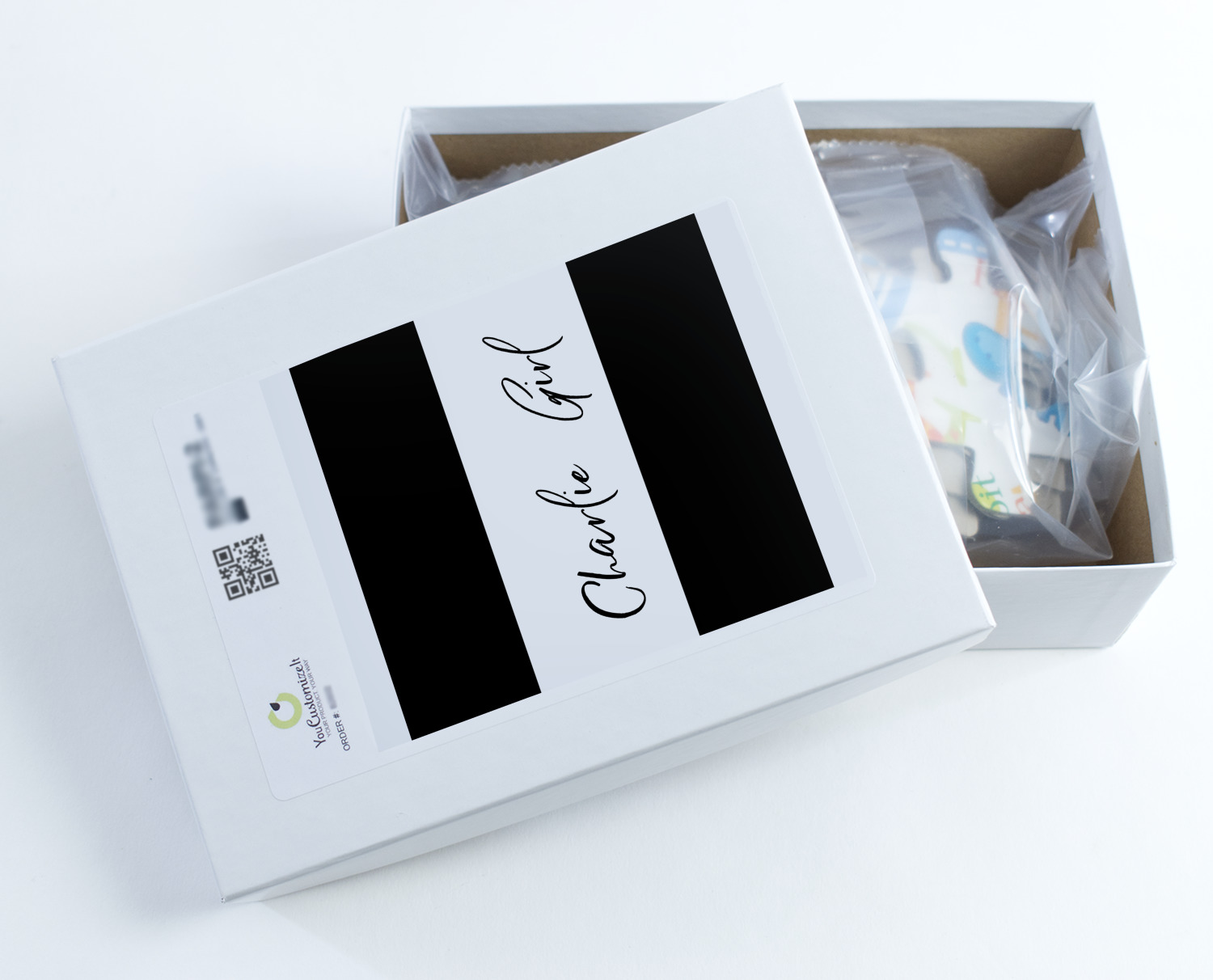 We print our puzzles on thick white chipboard in vibrant colors, then laminate the chipboard and die cut your puzzle. Your jigsaw puzzle is shipped to you in a box with the image of the puzzle on the box.