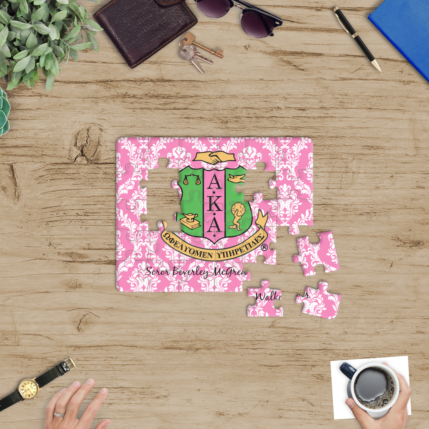 Depending on the look you are trying to achieve, you can add; a thematic pattern or background, with a photo in a frame and text or personalization to your puzzle. Basically if you can imagine it, you can design it!