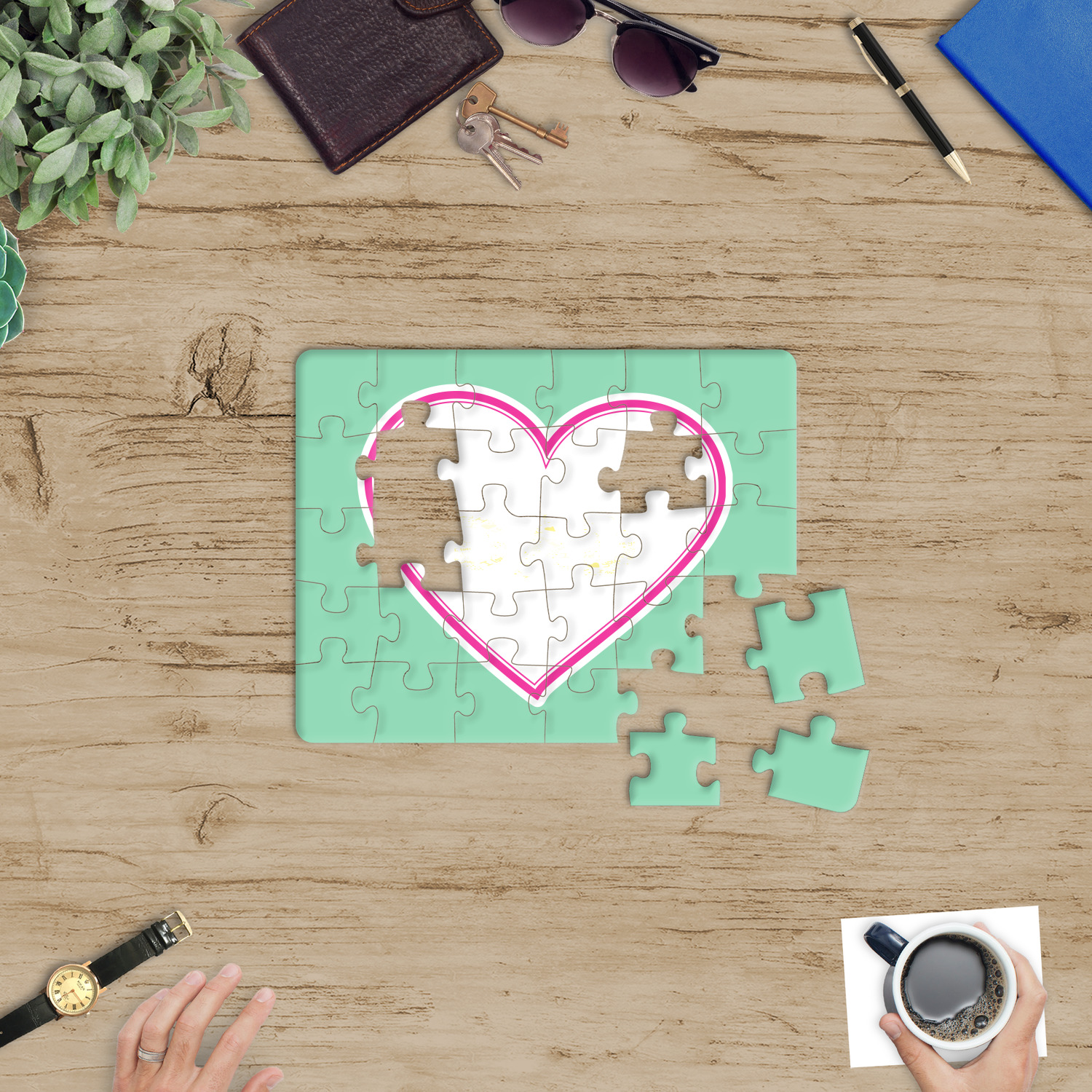 You can also upload your logo or art that you or your kids drew. To create more challenging jigsaw puzzles, you can create a pattern from with your logo or artwork. You can also add other elements such as text or personalization.