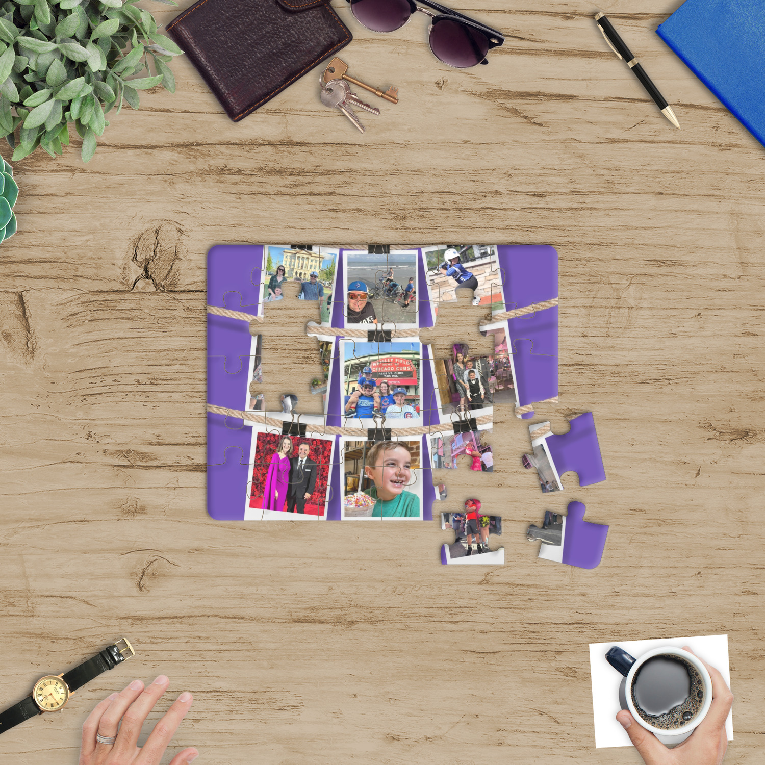 Depending on the look you are trying to achieve, you can add; a thematic pattern or background, with a photo in a frame and text or personalization to your puzzle. Basically if you can imagine it, you can design it!