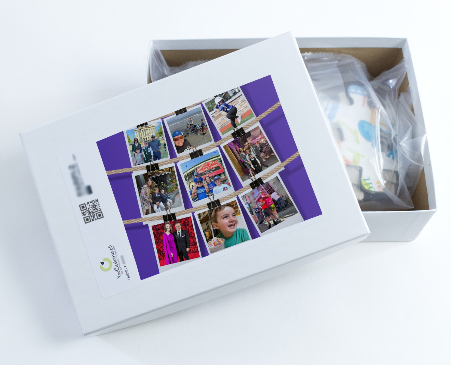 We print our puzzles on thick white chipboard in vibrant colors, then laminate the chipboard and die cut your puzzle. Your jigsaw puzzle is shipped to you in a box with the image of the puzzle on the box.