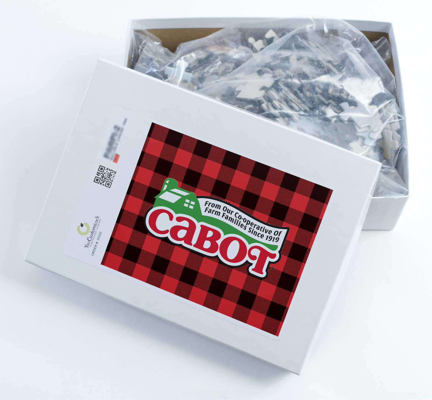 We print our puzzles on thick white chipboard in vibrant colors, then laminate the chipboard and die cut your puzzle. Your jigsaw puzzle is shipped to you in a box with the image of the puzzle on the box.