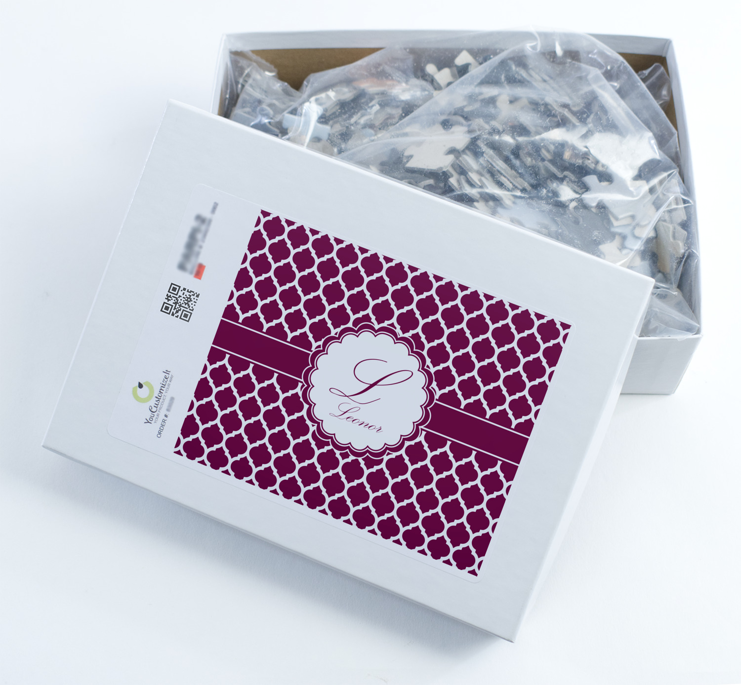 You can also upload your logo or art that you or your kids drew. To create more challenging jigsaw puzzles, you can create a pattern from with your logo or artwork. You can also add other elements such as text or personalization.