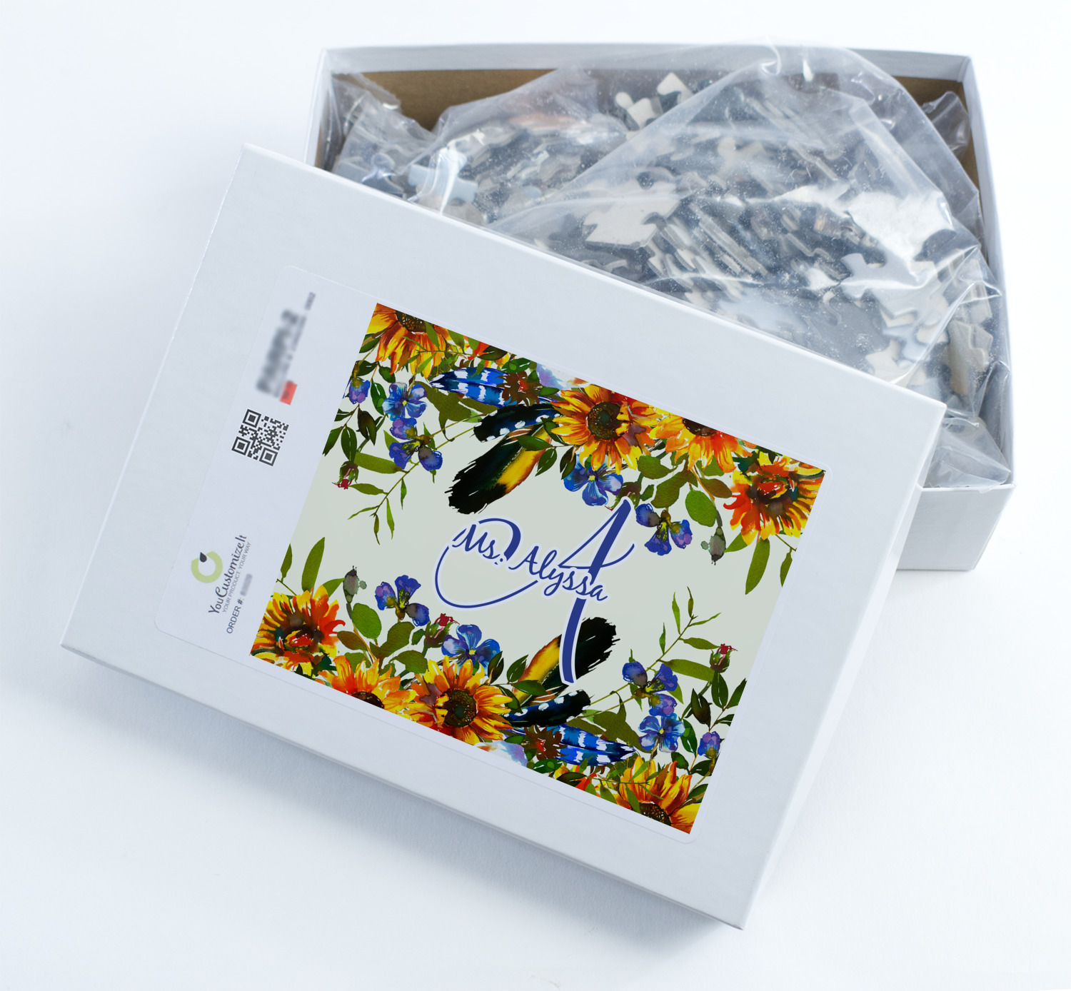 Depending on the look you are trying to achieve, you can add; a thematic pattern or background, with a photo in a frame and text or personalization to your puzzle. Basically if you can imagine it, you can design it!
