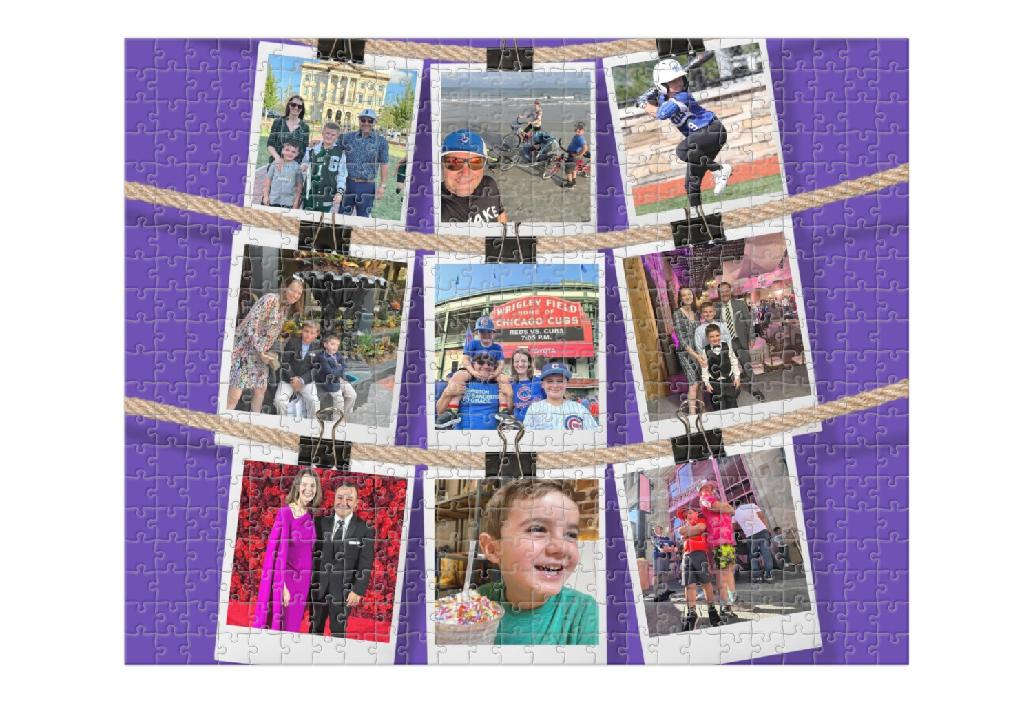 Depending on the look you are trying to achieve, you can add; a thematic pattern or background, with a photo in a frame and text or personalization to your puzzle. Basically if you can imagine it, you can design it!