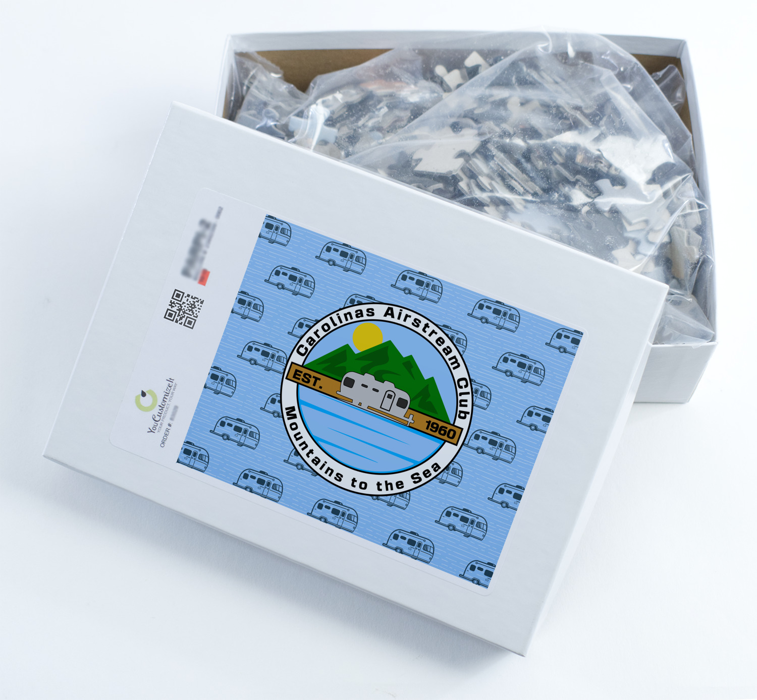 We print our puzzles on thick white chipboard in vibrant colors, then laminate the chipboard and die cut your puzzle. Your jigsaw puzzle is shipped to you in a box with the image of the puzzle on the box.