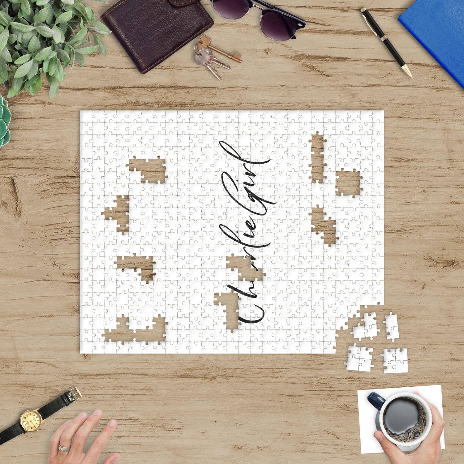 Depending on the look you are trying to achieve, you can add; a thematic pattern or background, with a photo in a frame and text or personalization to your puzzle. Basically if you can imagine it, you can design it!
