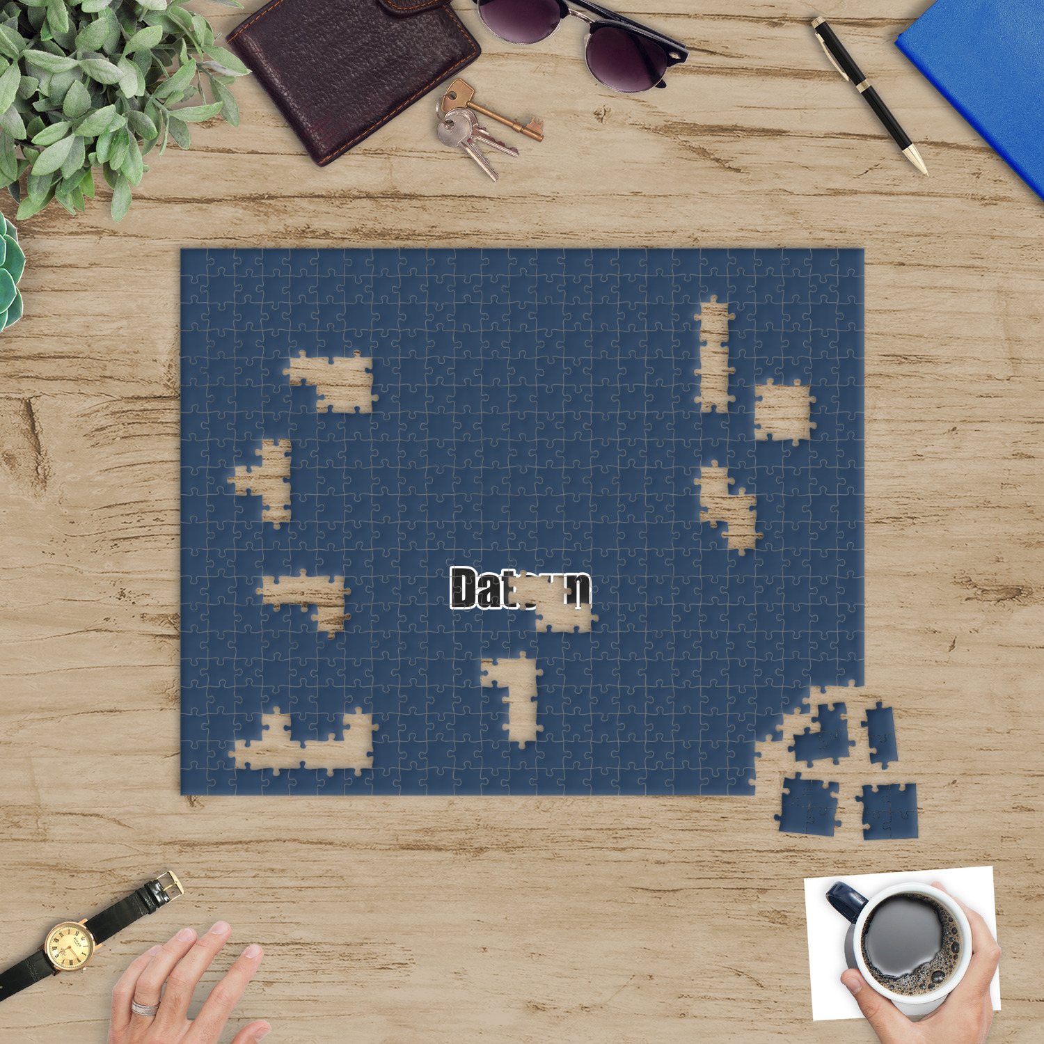 You can also upload your logo or art that you or your kids drew. To create more challenging jigsaw puzzles, you can create a pattern from with your logo or artwork. You can also add other elements such as text or personalization.