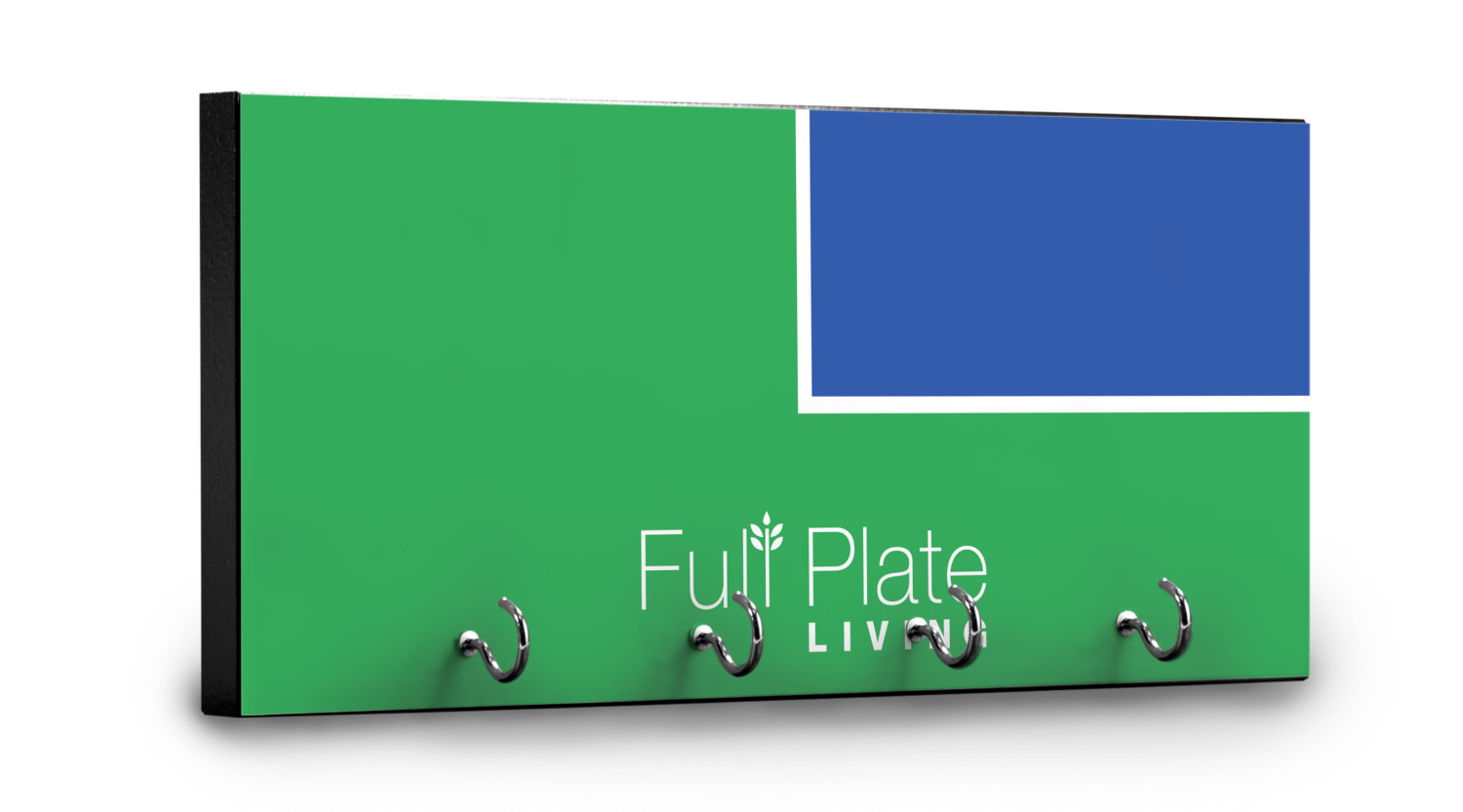 This 11" x 5" key hanger is made of sturdy wood and has four metal hooks lining the bottom. This is the perfect size for a family with several drivers. Not only can you hang keys on it though, but pet leashes and other small items. The board is black on the sides and back and is printed with the design of your choice on the front.
