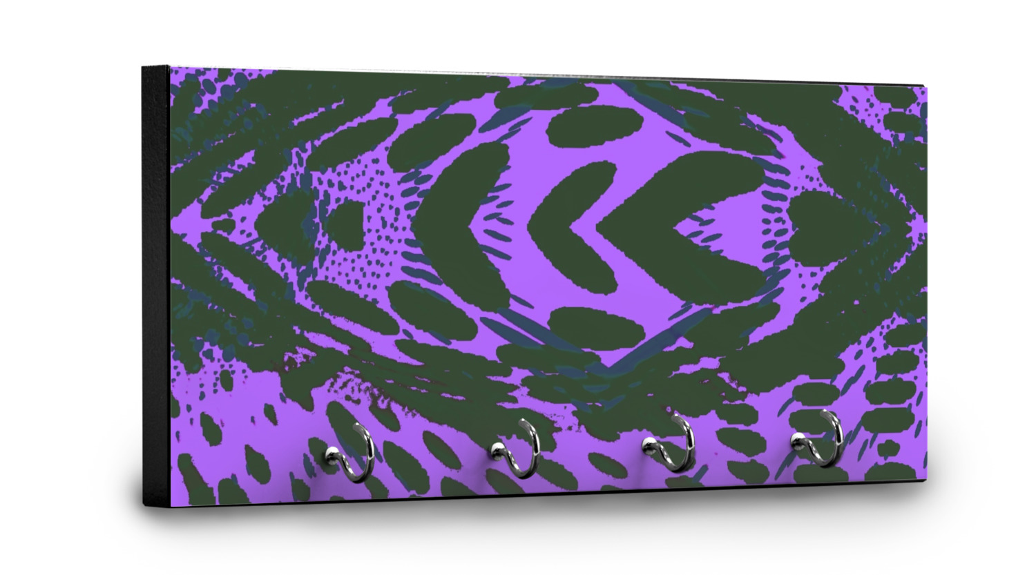 This 11" x 5" key hanger is made of sturdy wood and has four metal hooks lining the bottom. This is the perfect size for a family with several drivers. Not only can you hang keys on it though, but pet leashes and other small items. The board is black on the sides and back and is printed with the design of your choice on the front.