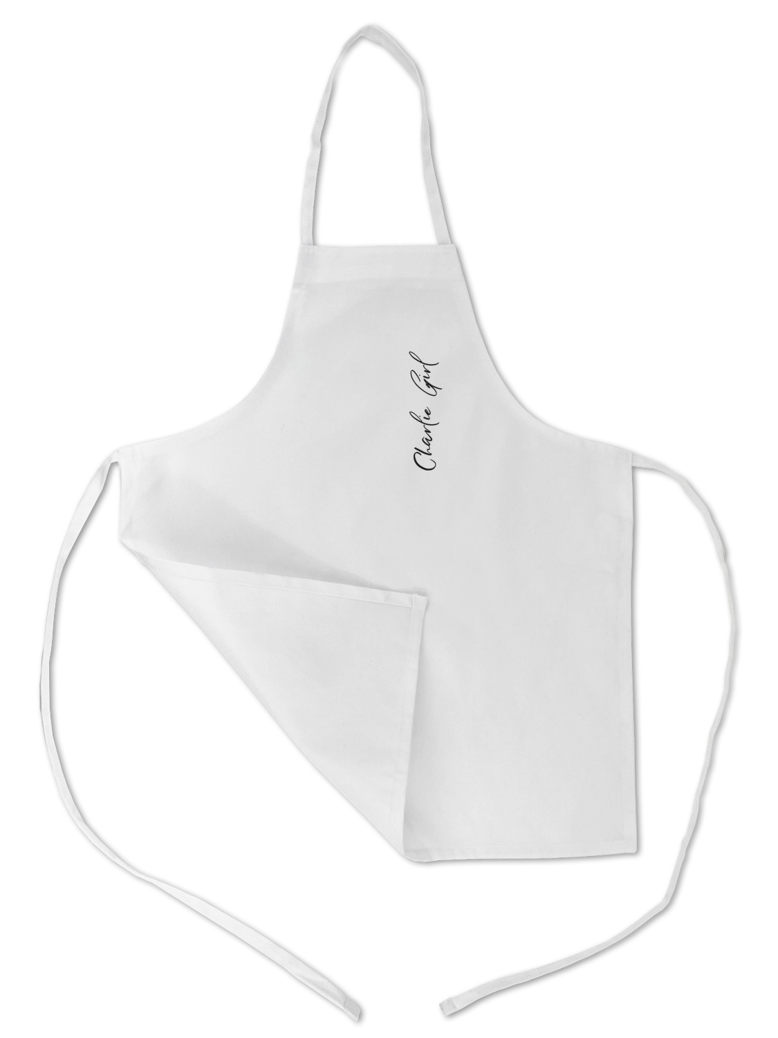 Our aprons are a lightweight yet durable polyester material. These aprons come in two sizes to fit most kids. We print your custom design on the front of the apron to display your creativity!