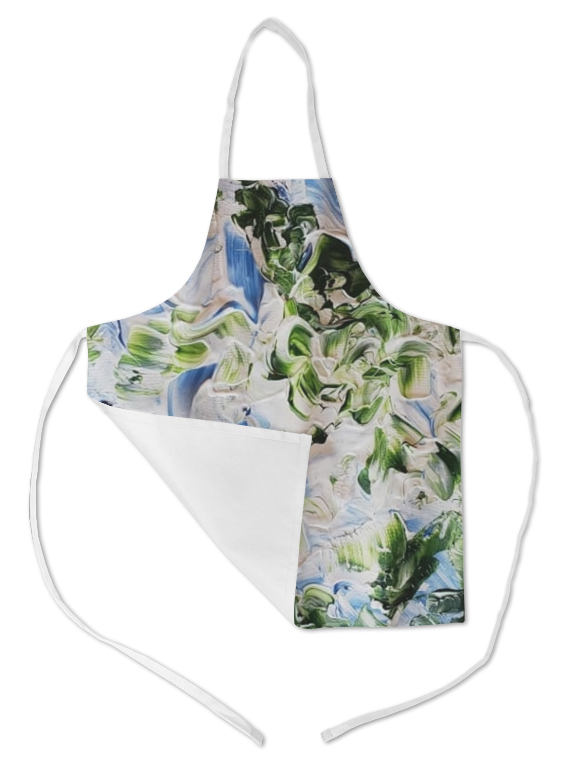 Our aprons are a lightweight yet durable polyester material. These aprons come in two sizes to fit most kids. We print your custom design on the front of the apron to display your creativity!