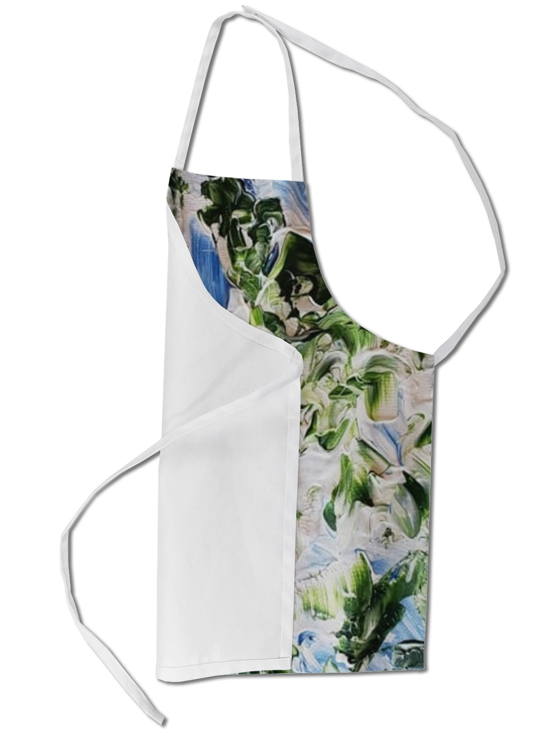 Our aprons are a lightweight yet durable polyester material. These aprons come in two sizes to fit most kids. We print your custom design on the front of the apron to display your creativity!