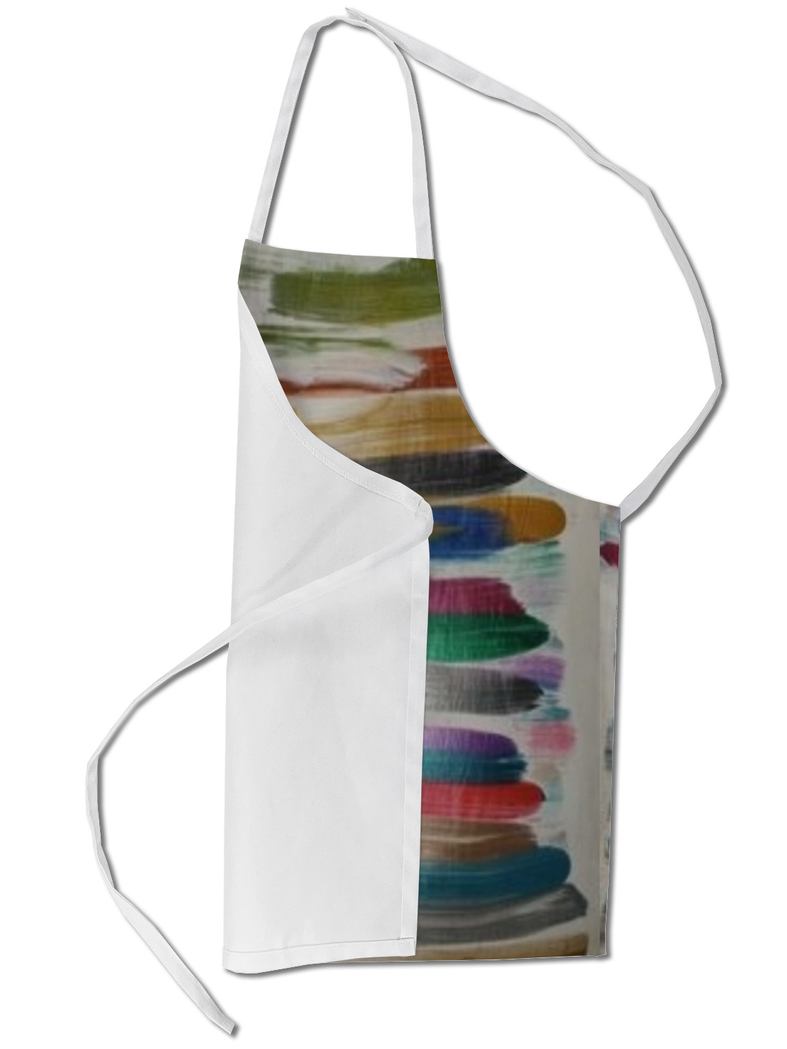 Our aprons are a lightweight yet durable polyester material. These aprons come in two sizes to fit most kids. We print your custom design on the front of the apron to display your creativity!