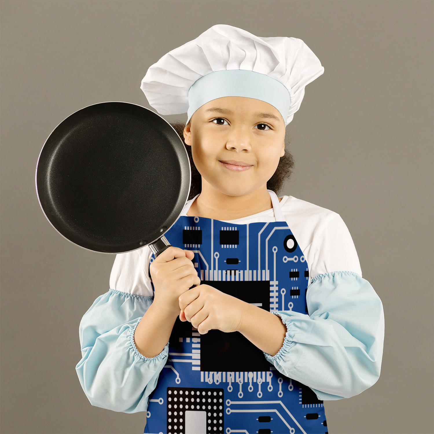 Our aprons are a lightweight yet durable polyester material. These aprons come in two sizes to fit most kids. We print your custom design on the front of the apron to display your creativity!