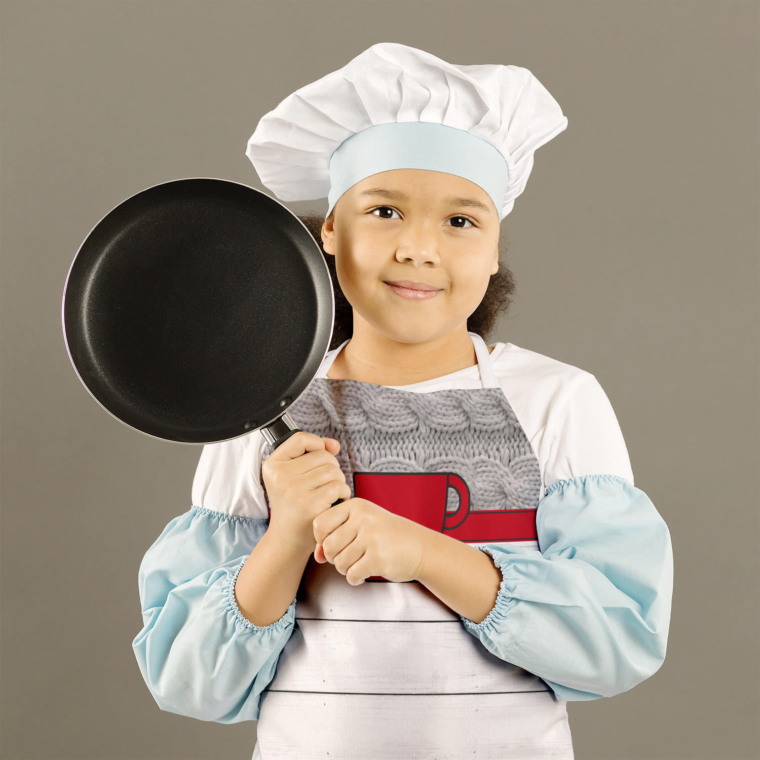 Our aprons are a lightweight yet durable polyester material. These aprons come in two sizes to fit most kids. We print your custom design on the front of the apron to display your creativity!