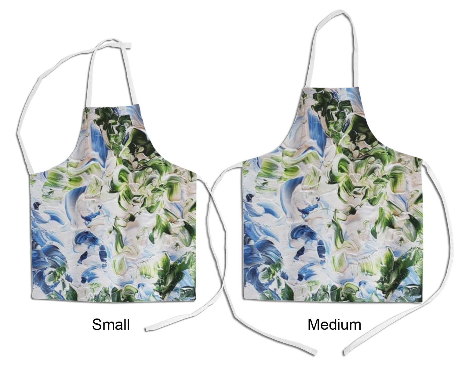 Our aprons are a lightweight yet durable polyester material. These aprons come in two sizes to fit most kids. We print your custom design on the front of the apron to display your creativity!
