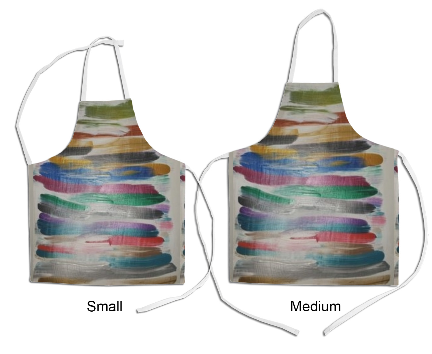 Our aprons are a lightweight yet durable polyester material. These aprons come in two sizes to fit most kids. We print your custom design on the front of the apron to display your creativity!