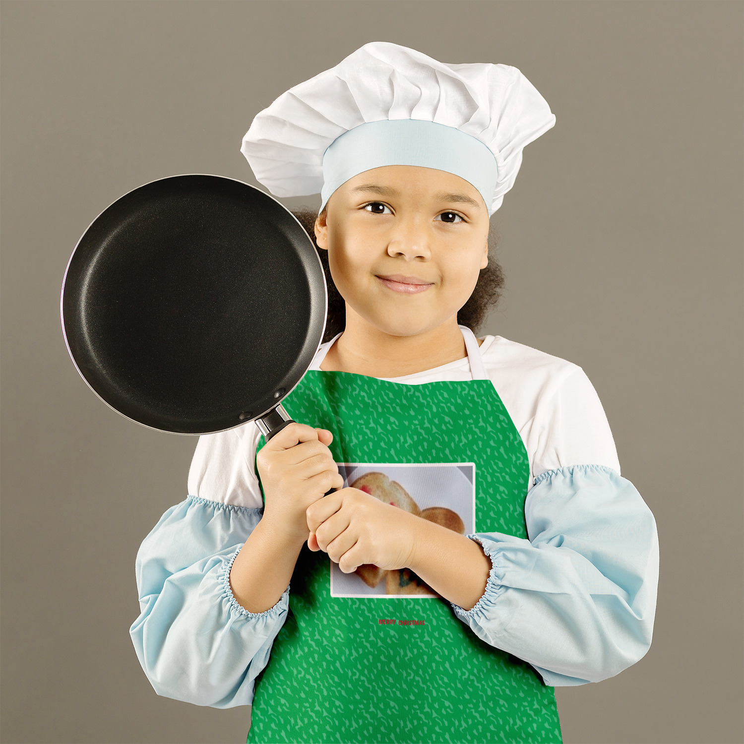 Our aprons are a lightweight yet durable polyester material. These aprons come in two sizes to fit most kids. We print your custom design on the front of the apron to display your creativity!
