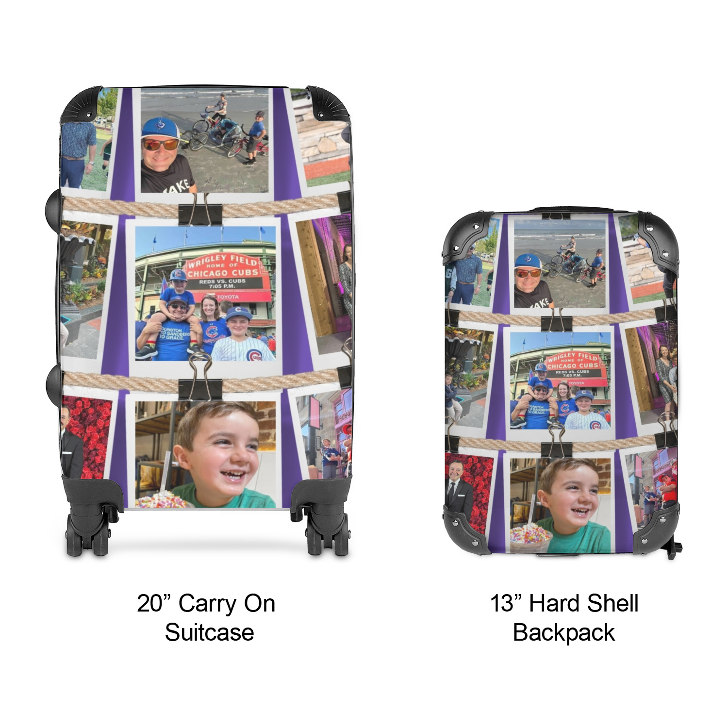 Included in this set is our smallest suitcase - the 20" carry on - and our smallest hard shell backpack - the 13" kids backpack. This allows for your child to have all of their essentials packed in their own suitcase and pack their activities and snacks in their own backpack.