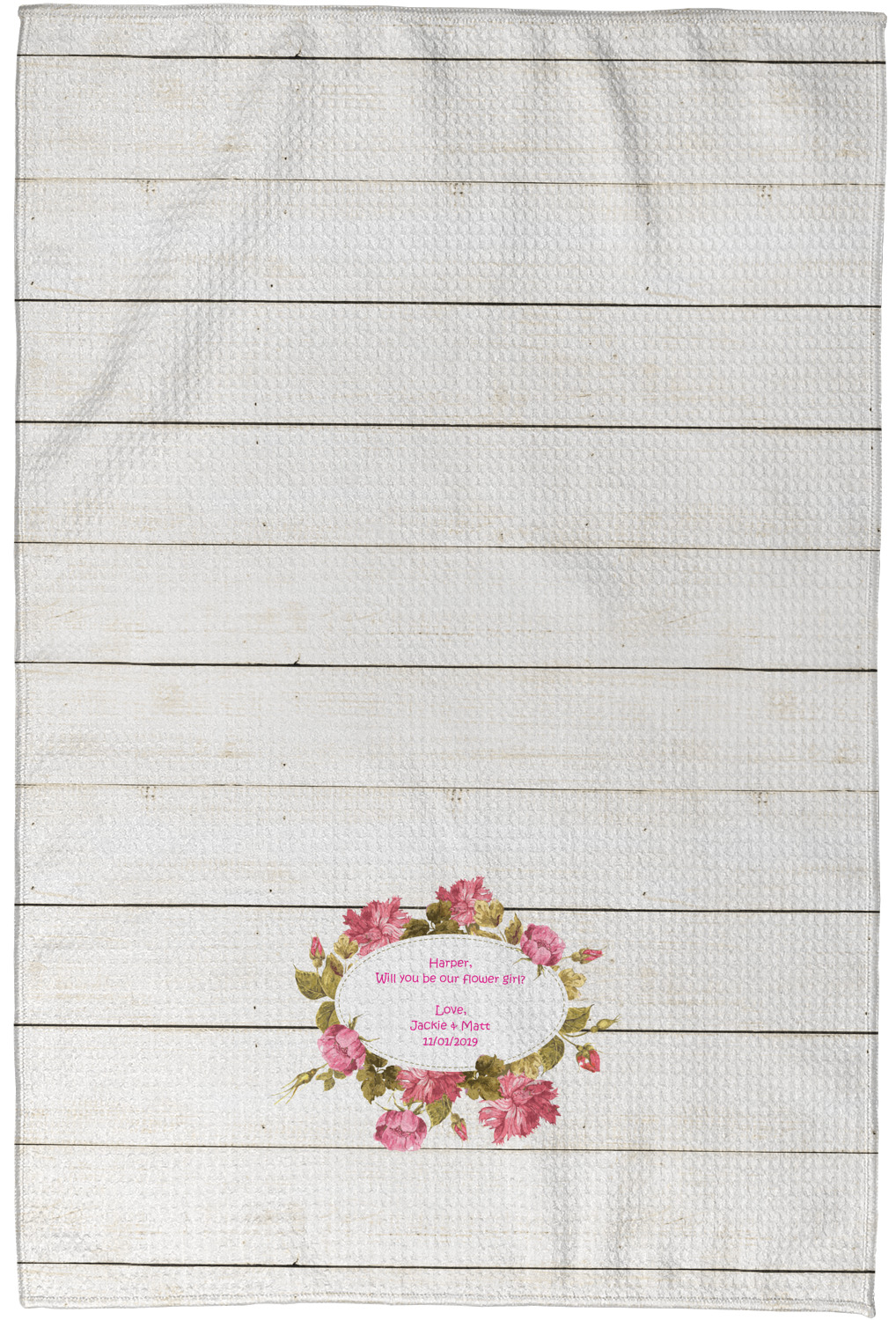Each waffle weave kitchen towel is approximately 16 x 24 inches with your design printed on one side and the back is white.