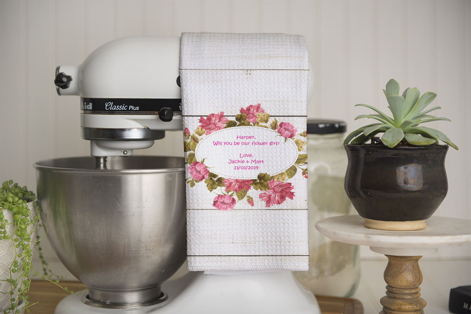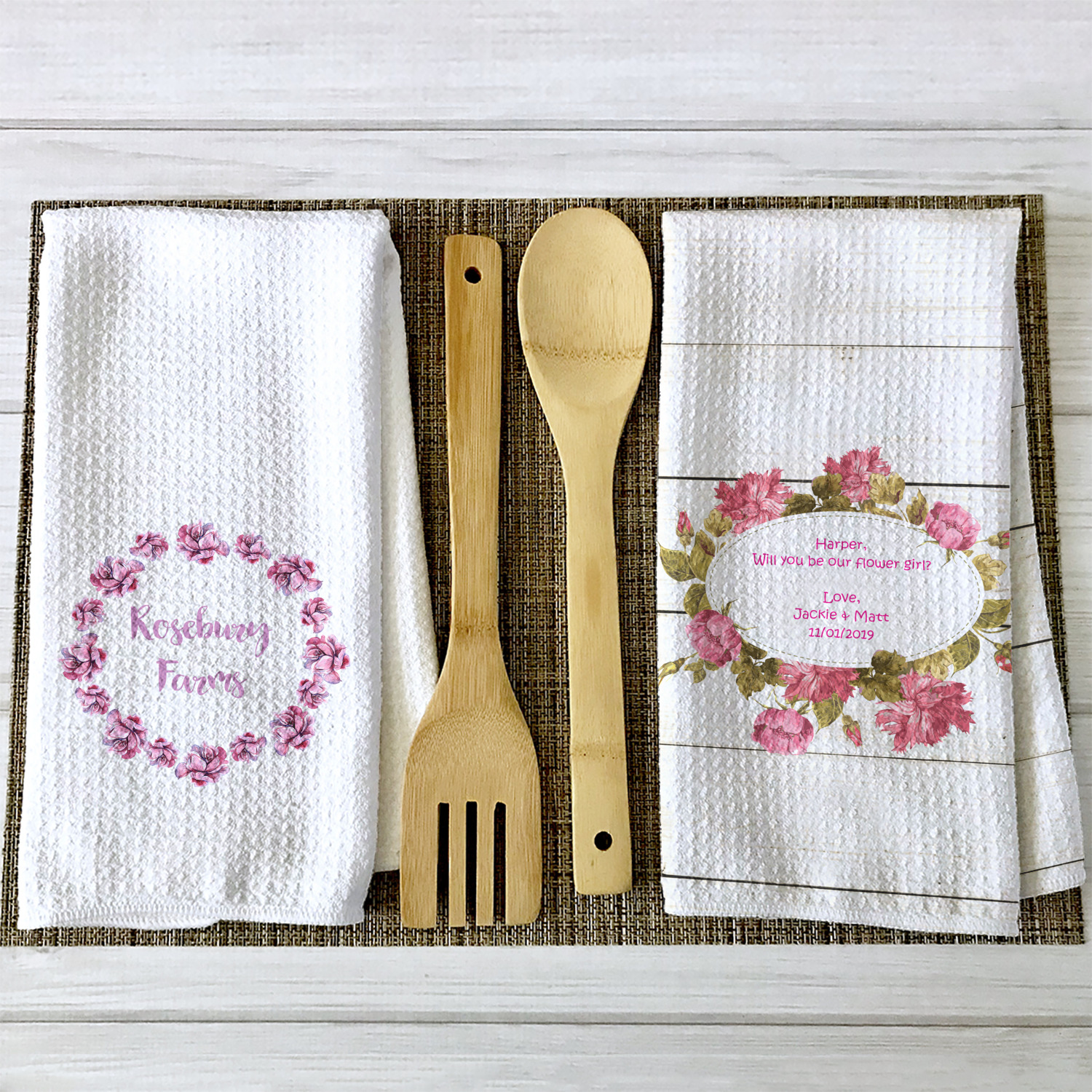 Personalized kitchen towels are pretty and practical kitchen décor accents ideal for holiday dinners and other special occasions! Customize one of our many designs or create your own with our custom design template.