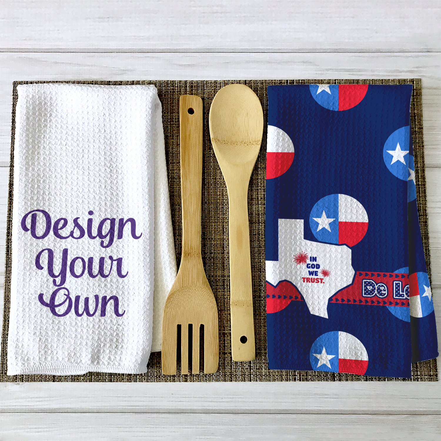 Some say the kitchen is the heart of the home, so why not adorn it with our unique customizable waffle weave kitchen towels and give it life! Print your personality onto a kitchen towel and choose between our two print styles - partial or full color print!