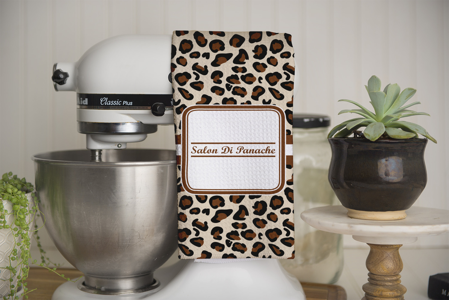 Each waffle weave kitchen towel is approximately 16 x 24 inches with your design printed on one side and the back is white.
