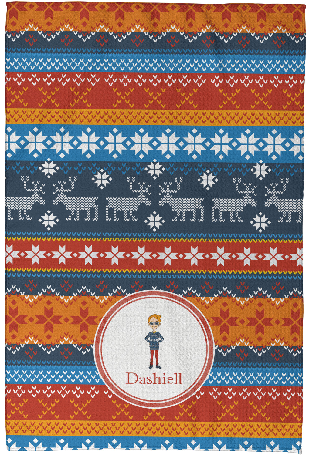 Each waffle weave kitchen towel is approximately 16 x 24 inches with your design printed on one side and the back is white.